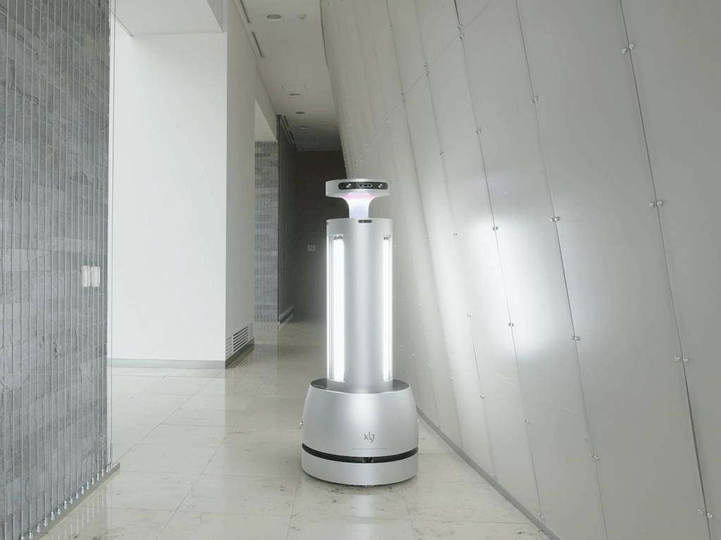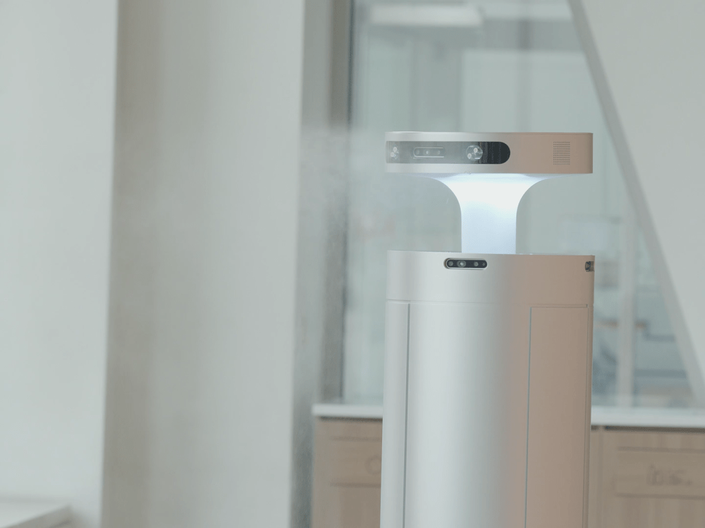 A key feature of the AIDBOT is that it disinfects by emitting UV rays from its trunk and spraying disinfectants from its upper section, and does not require humans to track and manually control it. One can simply monitor it from a control center and check that it is functioning properly. The robot uses AI to create a three-dimensional map of a building’s interior and disinfects the building on its own. It also intensively disinfects objects that humans frequently come into contact with, such as doorknobs. The depth camera and LiDAR sensor allow it to sense human movements and disinfect without bumping into obstacles. Since direct exposure to UV rays at a close distance is harmful to humans, the robot stops performing UV disinfection when it senses an approaching person.